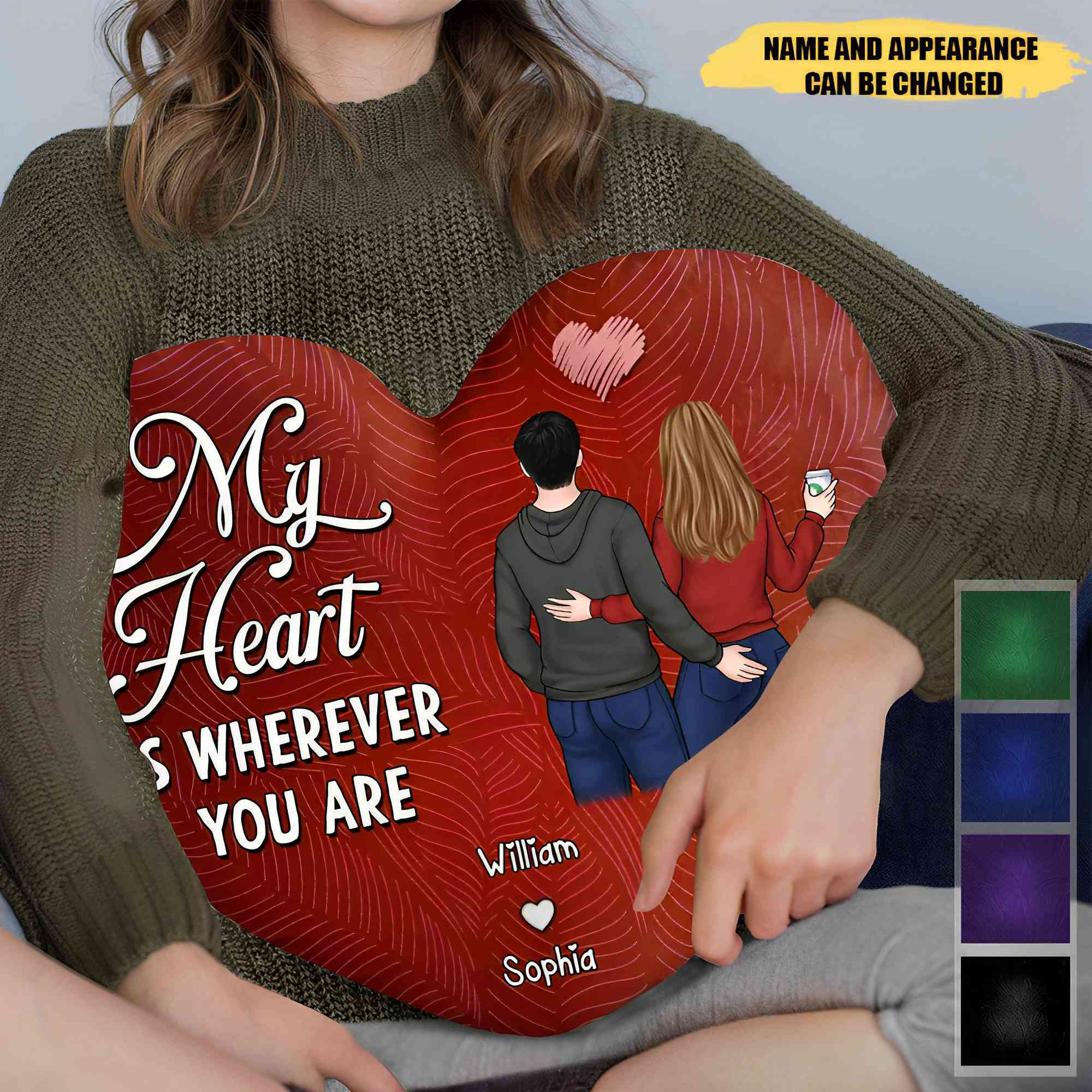My Heart Is Wherever You Are - Anniversary, Loving Gift For Couples, Husband, Wife - Personalized Heart Shaped Pillow