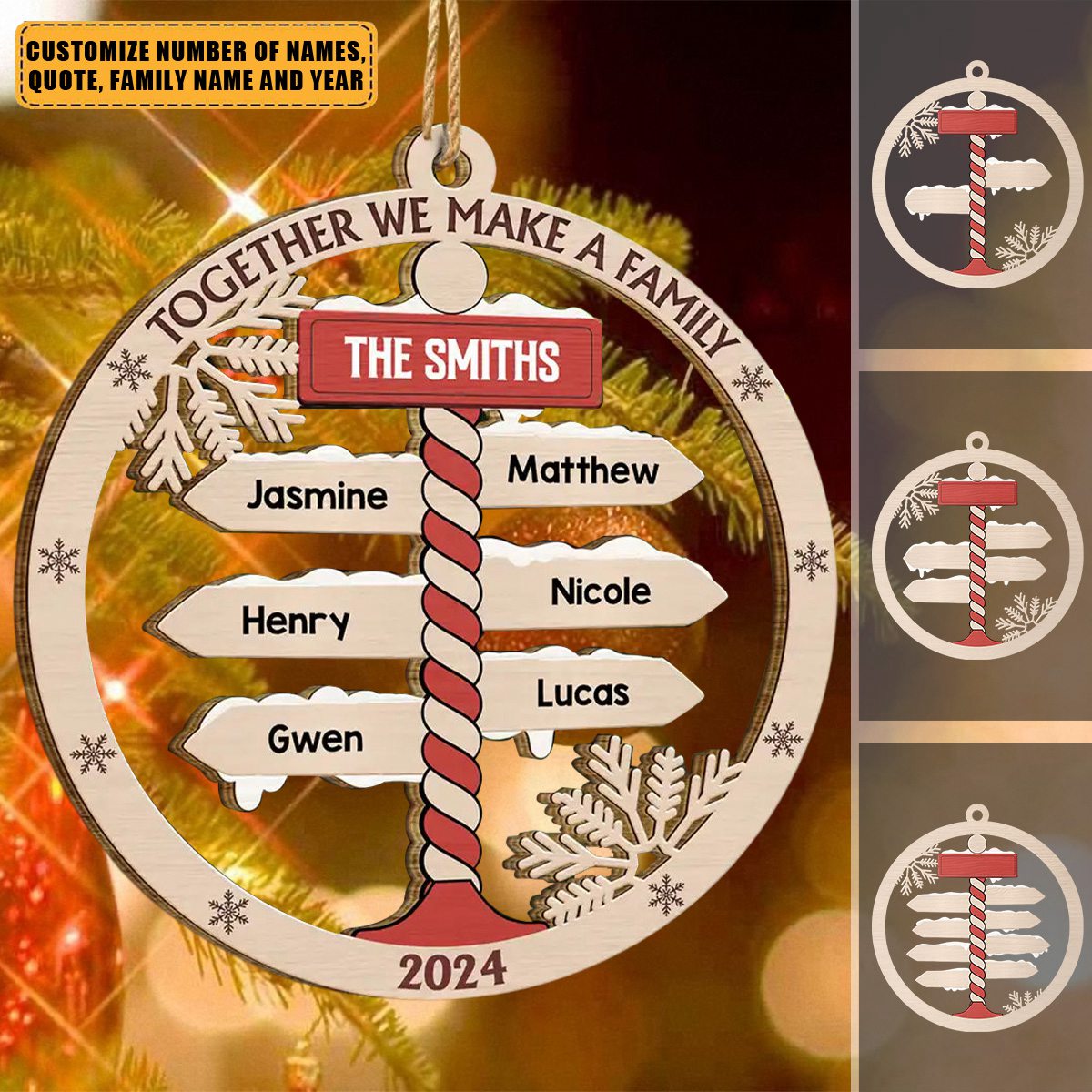 Together We Make A Family North Pole Sign - Personalized Wooden Cutout Ornament