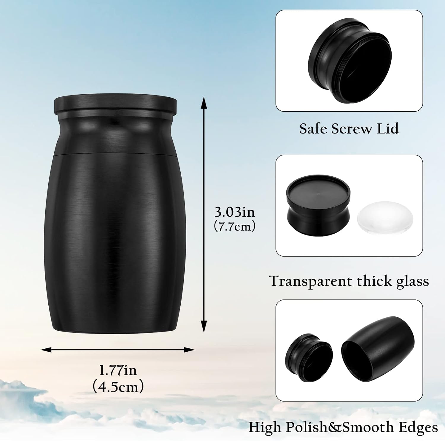 • SCREW-TOP LID: The small urn provides a reliable and secure seal with a screw-top lid. Threaded lid ensures that your loved one’s ashes will remain closed inside if the urn is dropped or bumped.