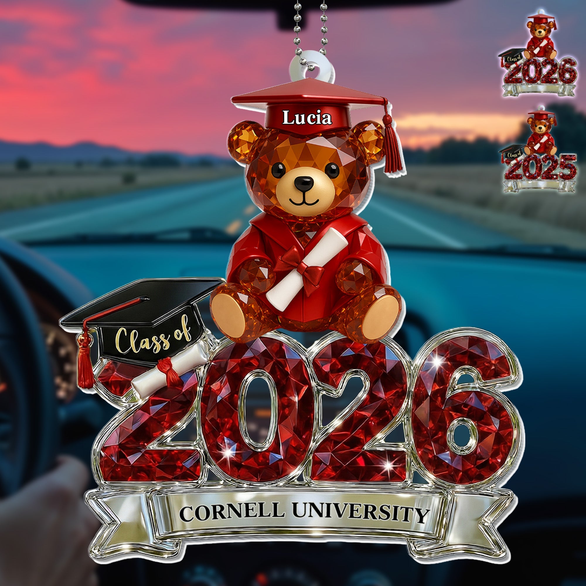 Elevate your car interior with this custom hanging ornament, designed to add charm and personality to your ride. Perfect for gifting or personal use, this ornament is a meaningful keepsake for Graduation Season, birthdays, or any special occasion.