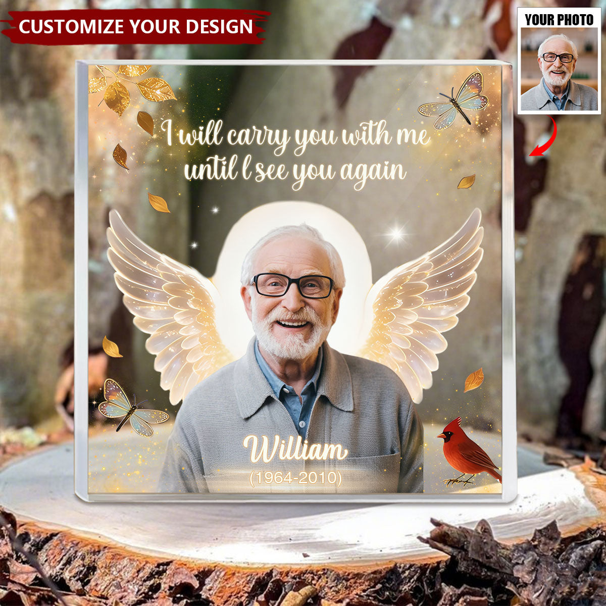 This Angel Wings-Personalized Acrylic Memorial Plaque, Sympathy Gift, can be customized with the name, year, and photo of your loved one, making it perfect for remembering someone or as a gift for a friend who has lost a loved one.