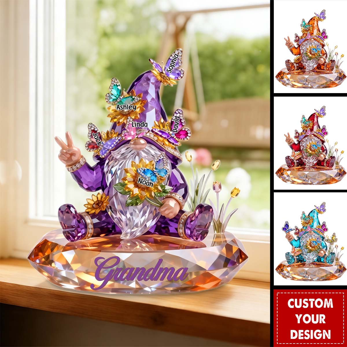 Celebrate Grandma and the precious grandchildren who make her life bloom with this charming Personalized Grandma With Kids Names Acrylic Plaque. Featuring vibrant sunflowers and playful butterflies, this whimsical design becomes even more special when customized with the names of her beloved grandkids.
